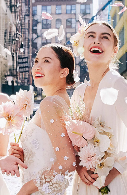 We don’t think bridal should be uncomfortable or kept in a box. We don’t think you should be pressured into not feeling like yourself. Our dresses are unusual, figure flattering and above all comfortable. They are made to stand out in the bridal world and to make your guests salute you for being you.
